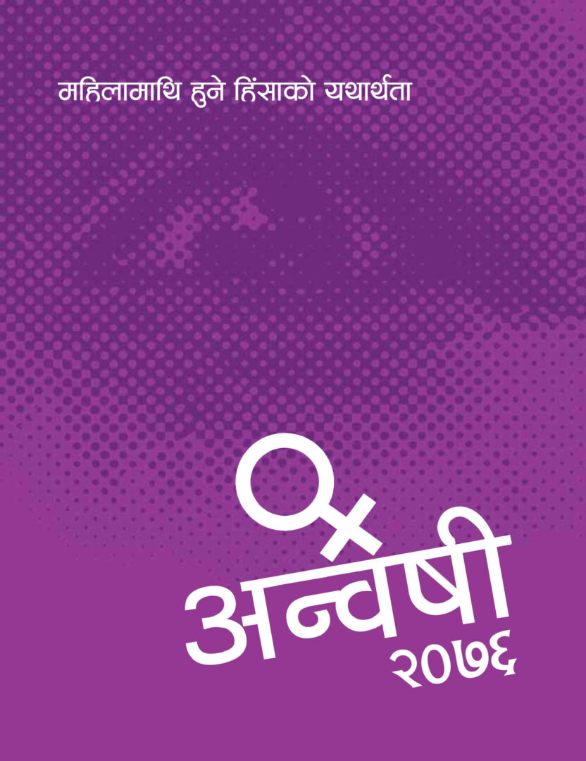 ड्ड महिलामाथि हुने हिंसा हरेक समाज, भूभाग, जात र जातीयता, वर्ग, लिङ्गमा उत्तिकै हुँदै आइरहेको छ । यद्यपि यस्ता घटनाहरूको एकमुष्ट दस्तावेजीकरण गरी एकीकृत तथ्याङ्क निर्माण कार्य भएको छैन । विभिन्न गैर सरकारी संस्था तथा केही सरकारी निकायबाट गरिदै आइएको महिला हिंसाका तथ्याङ्क संकलन तथा विश्लेषण कार्य आफैमा विस्तृत र एकीकृत स्वरुपको हुने गरेको छैन । यस्तो तथ्याङ्क निजी वा गैरसरकारी क्षेत्रबाट गरिनु आफैमा सह्रानीय कार्य हो । यद्यपि सरकारी तवरमा विस्तृत एकीकृत तथ्याङ्क निर्माणको पहल गरिनु उपयुक्त हुनेछ । विभिन्न गैरसरकारी संस्था तथा निजी क्षेत्रहरूको परिचालन एवंसमन्वय र सहकार्य मार्फत् त्यस्तो एकीकृत तथ्याङ्क निर्माणको काम गर्न सकिनेछ । जसले नेपालमा महिलामाथि हुने हिंसाको अवस्थालाई समग्रतामा आँकलन गर्न र तिनको पहिचान गर्न सहयोग पुग्नेछ । त्यस्तो तथ्याङ्कका आधारमा हिंसा अन्त्य गर्ने उपायहरूको खोजी कार्यमा सहजता ल्याउने छ ।