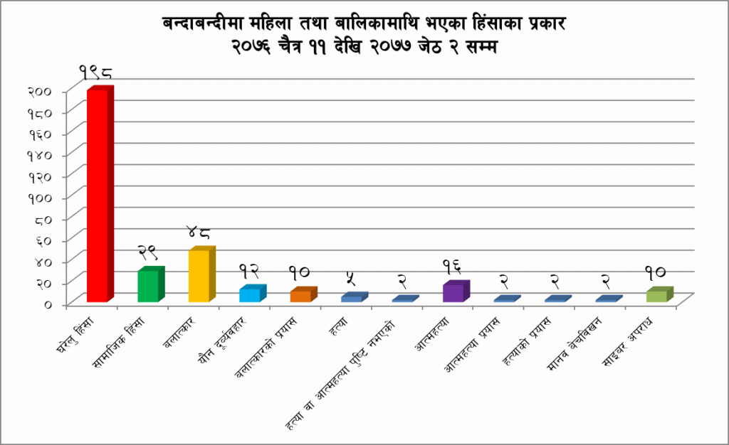 बन्दाबन्दीकोे समयावधिमा १७६ जना महिला तथा बालिकामाथि हिंसा