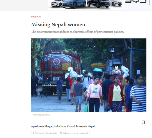 Missing Nepali women Ayushman Bhagat, Sulochana Khanal & Sangita Nepali Rama (name changed) left her home in 2012 to work as a domestic worker in Kuwait. She migrated to support her family. For years, she sent regular remittances and assured her mother that she was safe. Then, on August 9, 2015, she made her last call and told […]