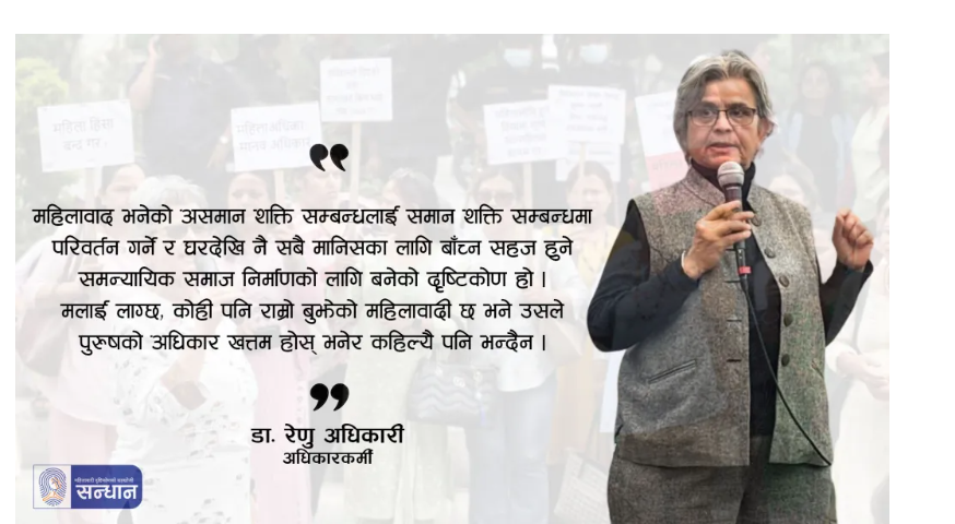 मैले सबैभन्दा पहिला देखेको महिलावादी मेरो हजुरआमा – डा. रेणु अधिकारी महिलावाद संवाद शृङ्खला–१३ चार दशकदेखि महिला अधिकारको क्षेत्रमा क्रियाशील डा. रेणु अधिकारी चिकित्सा पेसामा संलग्न हुनुहुन्थ्यो । उहाँले नेपालका सिराहा, चितवन र सल्यान जिल्लामा चिकित्सक भएर काम गर्नुभएको थियो । त्यसपछि उहाँले आफूलाई महिला अधिकार र सामाजिक न्यायको क्षेत्रमा लगाउने निधो गर्नुभयो र २०४८ […]