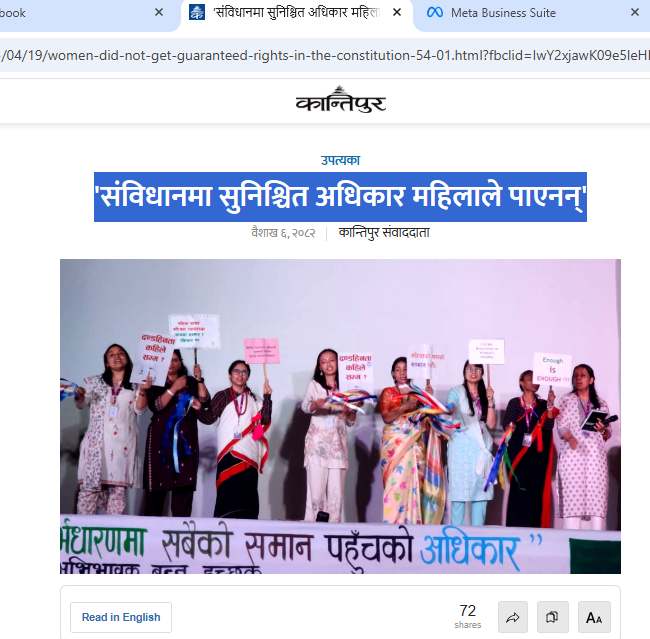 ‘संविधानमा सुनिश्चित अधिकार महिलाले पाएनन्’