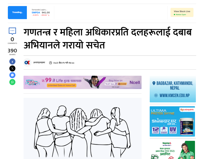 गणतन्त्र र महिला अधिकारप्रति दलहरूलाई दबाब अभियानले गरायो सचेत