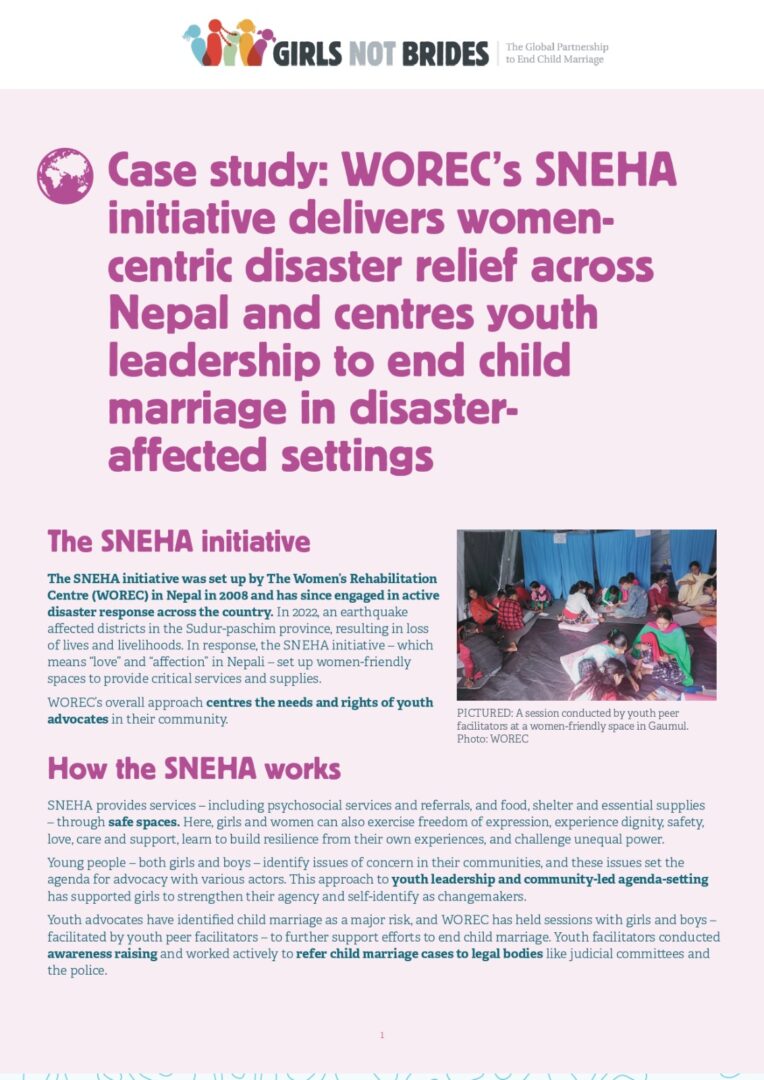 Case study: WOREC’s SNEHA initiative delivers women centric disaster relief across Nepal and centres youth leadership to end child marriage in disaster affected settings
