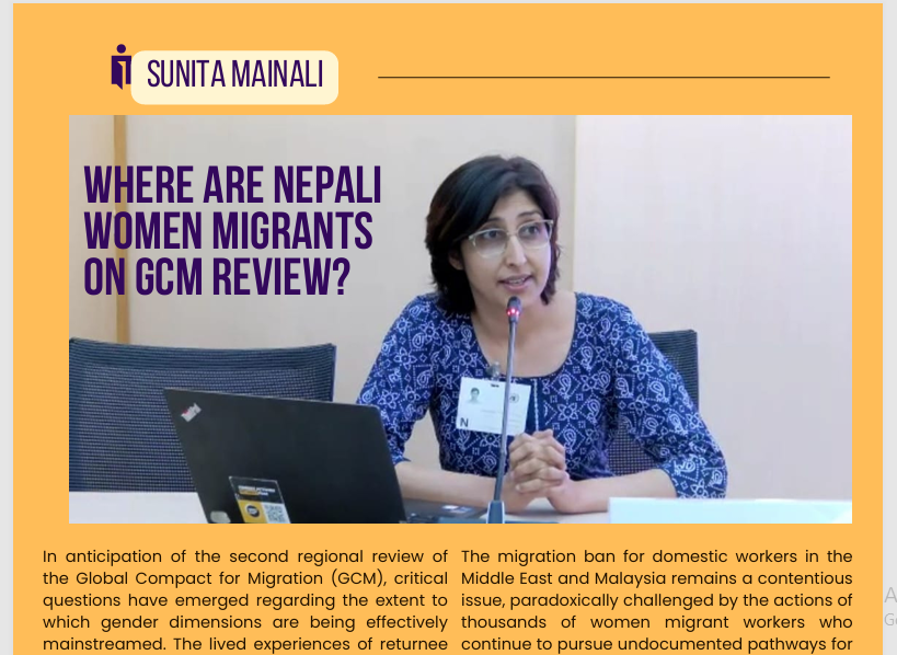 Where are Nepali Women Migrants on GCM review? In anticipation of the second regional review of the Global Compact for Migration (GCM), critical questions have emerged regarding the extent to which gender dimensions are being effectively mainstreamed. The lived experiences of returnee migrant women shed light on significant gaps in addressing gender-specific issues within migration […]