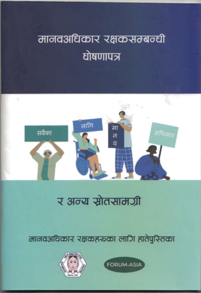 मानव अधिकार रक्षक सम्बन्धी घोषणापत्र र अन्य स्रोतसामग्री मानव अधिकार रक्षकहरुका लागि हातेपुस्तिका