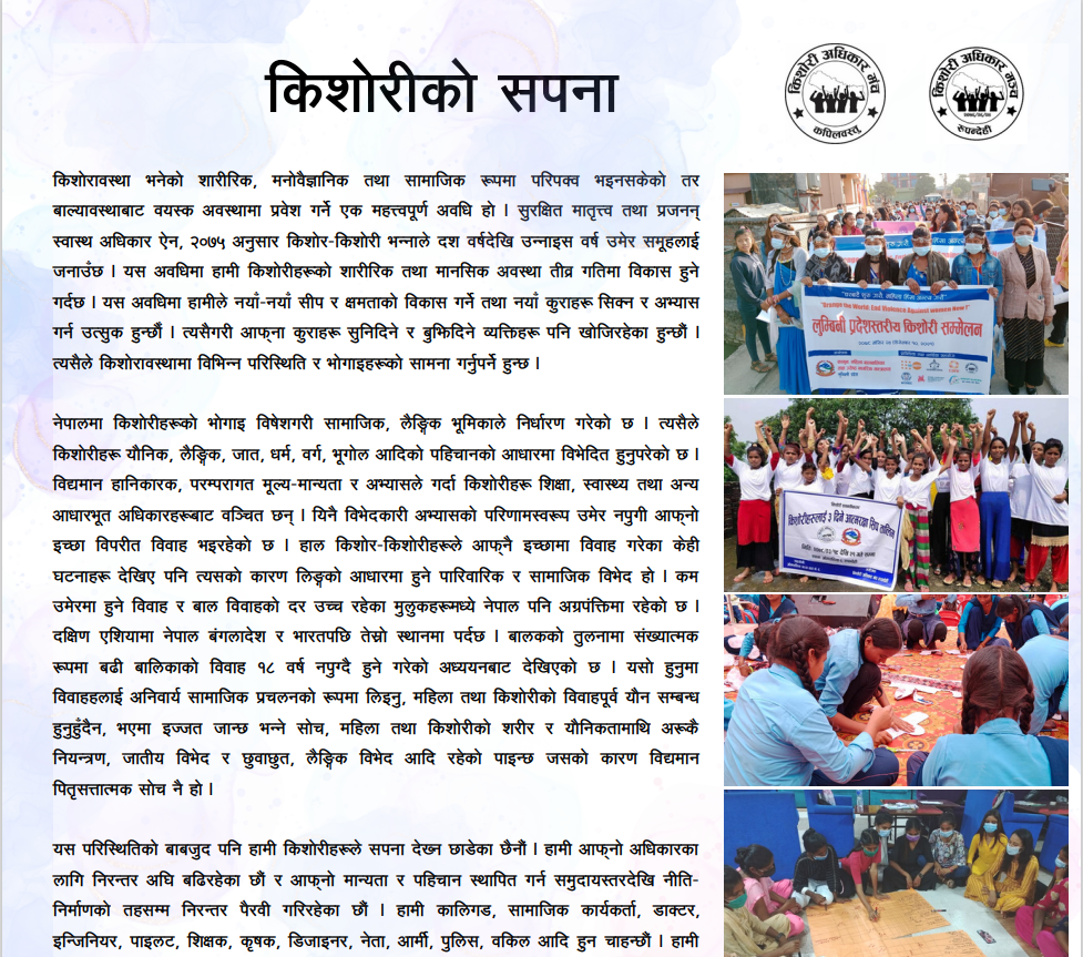 ‘अभियान’ ले किशोरीहरूमा ल्याएको परिवर्तन – एक अध्ययन