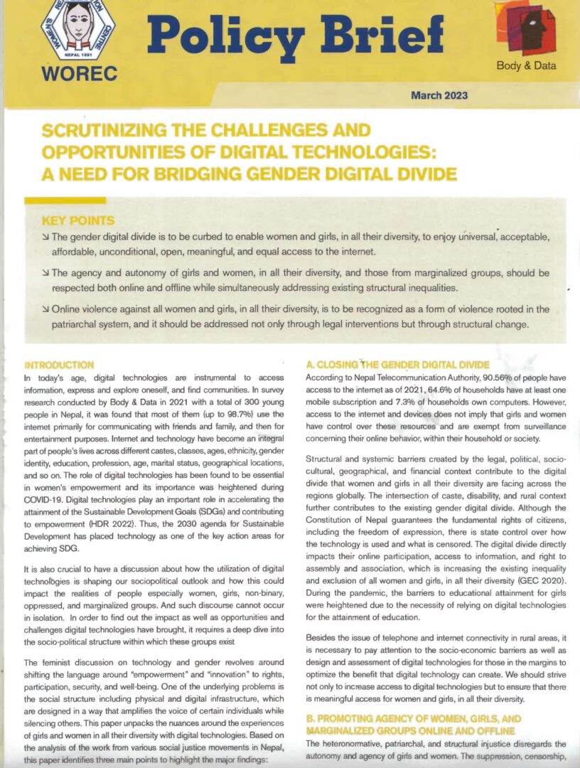 SCRUTINZING THE CHALLENGE AND OPPORTUNTIES OF DIGITAL TECHOLOGIES: A NEED FOR BRINDGING GENDER DIGITAL DIVIDE
